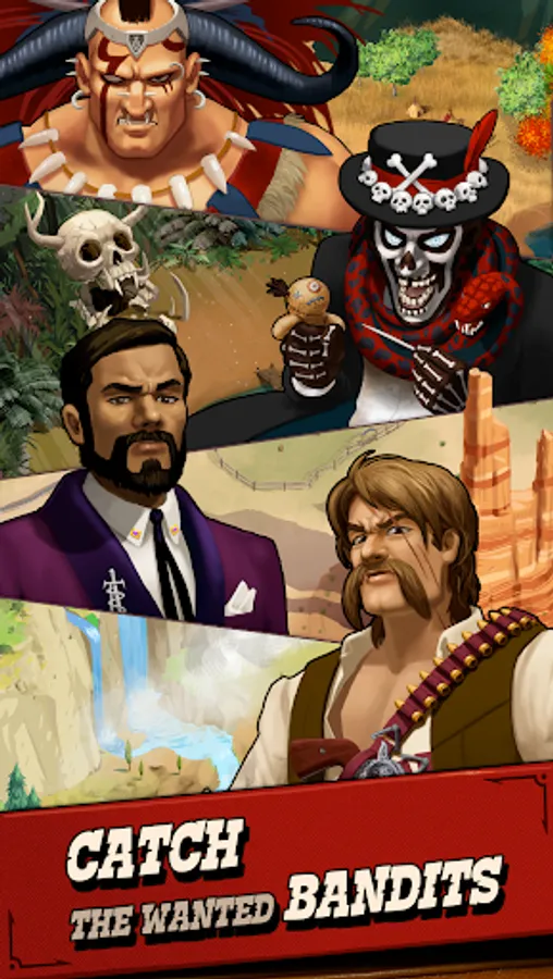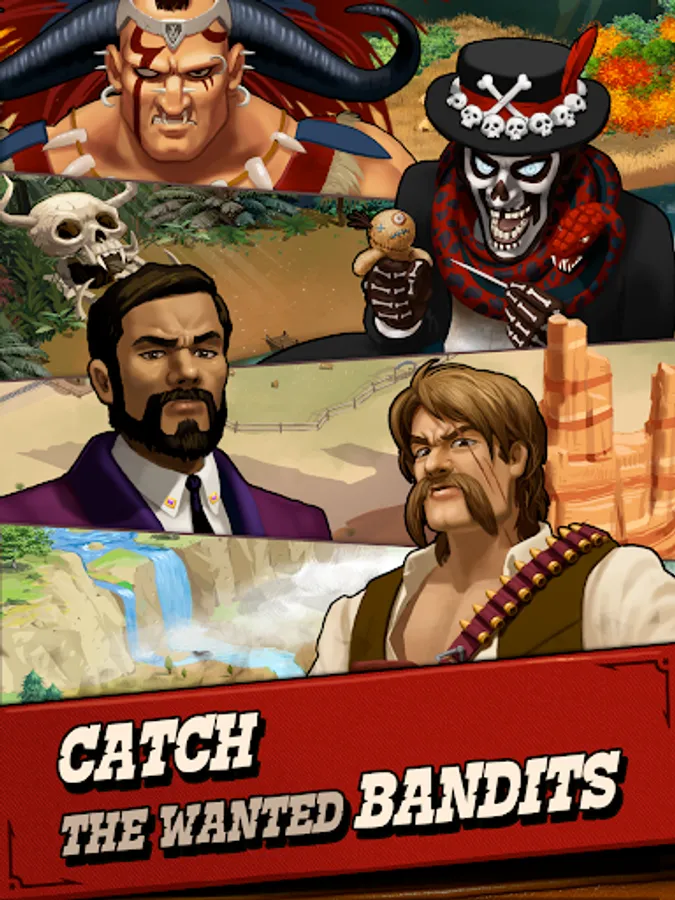 Choose your bounty hunter, chase and take down the outlaws, collect rewards, improve your strength and face stronger enemies until you reach the final boss.