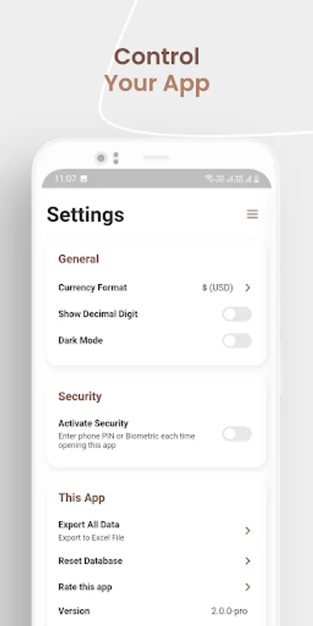 It can export your budget and expense records into Excel file. And also has extra security feature by enabling PIN and biometric authentication that you set in your phone.