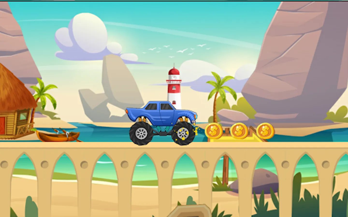 To score the most points possible is the primary objective of this mountain car game. This infinite driving game is typically accomplished by driving as far as you can without blowing out and gathering as many coins as you can.