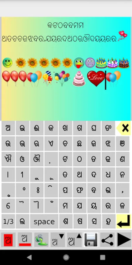 Use this app to create colorful text messages in Oriya. You can also include English text and smiley, flags and other icons. Images are saved on sdcard folder tinkutara/images. You can use and delete these images as per your needs.