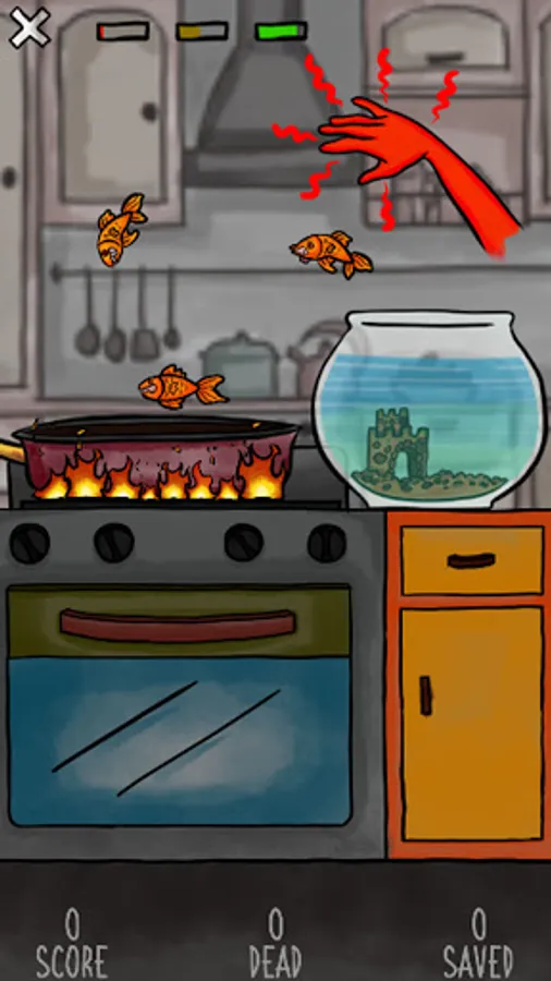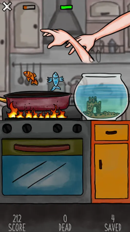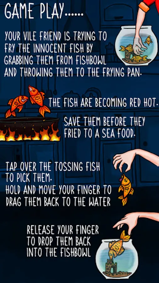 Your vile friend is trying to fry the innocent fish by grabbing them from fishbowl and throwing them to the frying pan.