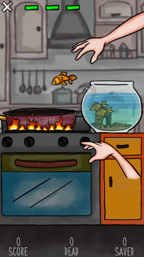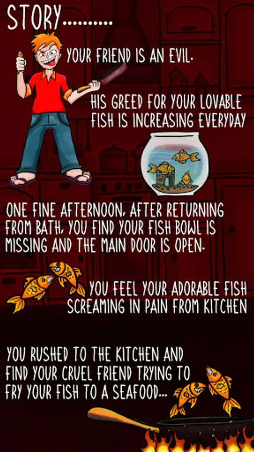 You rushed to the kitchen and find your cruel friend trying to fry your fish to a seafood...