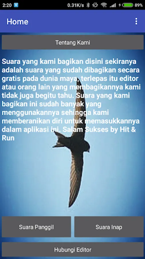The calling sounds and in-house sounds that we provide in this application are good quality sounds, because they have been widely used by swallow's nest farmers throughout Indonesia.