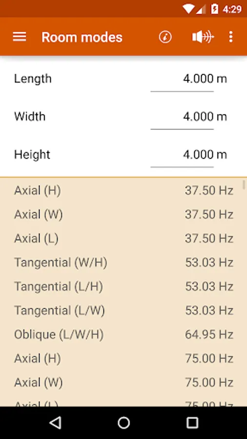 The room modal response tool allows you to compute the room modes present in a room. This is crucial when placing a subwoofer to provide correct bass response. It can also be used when designing a room to avoid dimensions that would lead to a poor modal response.