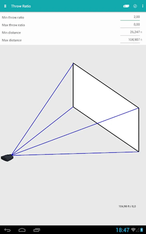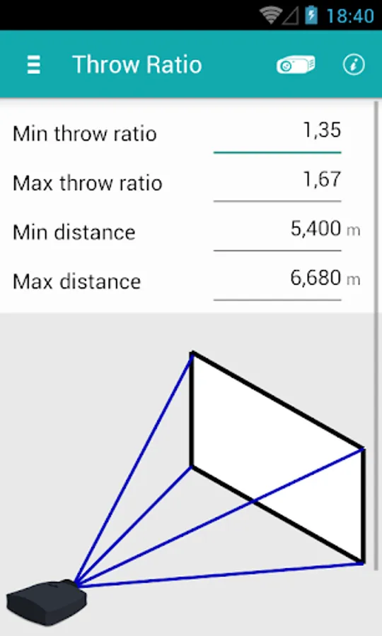 Alternatively, enter the distance from the screen where you wish to place your projector and the tool tells you the required throw ratio.