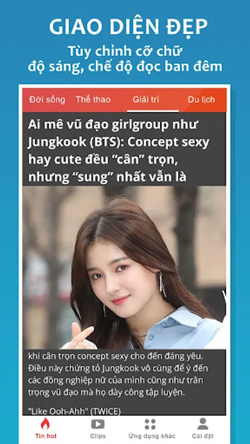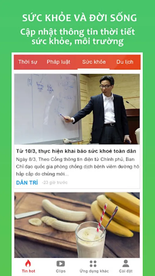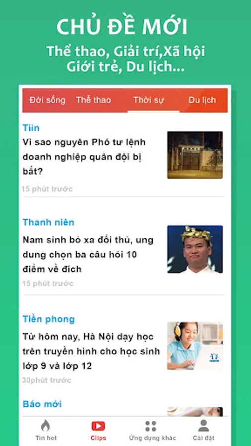 * Read general news from all the biggest newspapers in Vietnam such as 24h, vnexpress, dan tri, vietnamnet ...