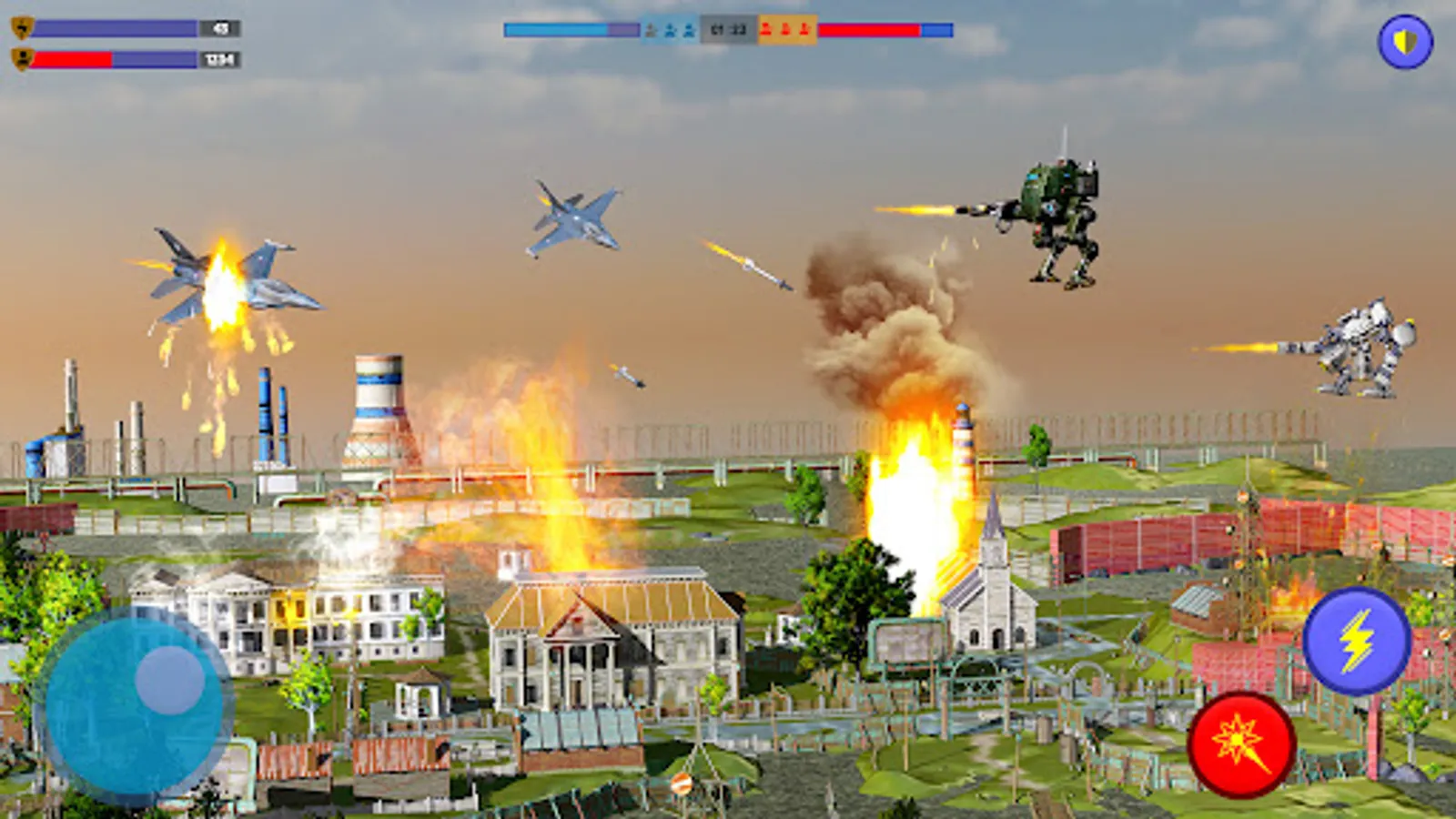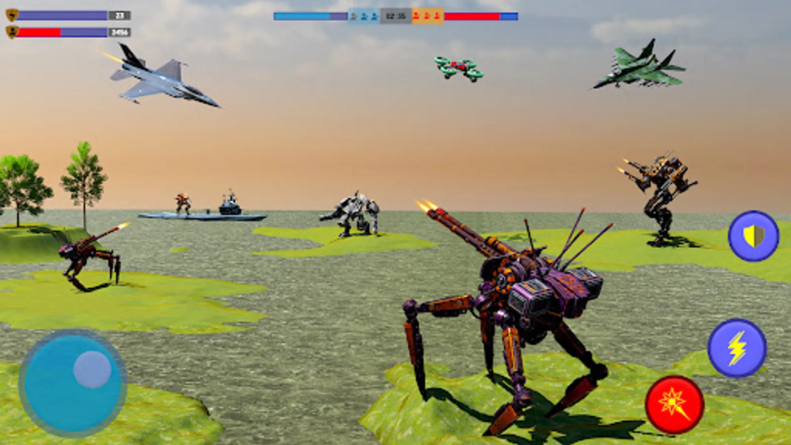 ➠ Multiple thrilling actions with flying robots fighting game.