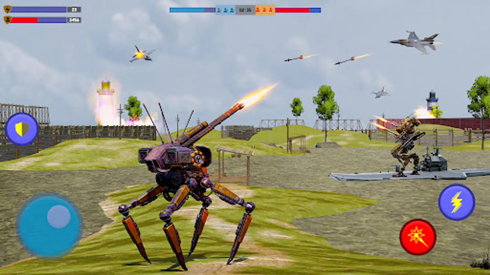 Get ready for futuristic fly stealth f22 jet fighter featured adventure wars vs fighting robot game in which robot from the enemy is trying to invade us and you have to defend your airbase. Our airbase is a frontline base of your country if enemy robots attacked and forced occupied they will have a lead on your whole airbases. In this flying combat flight simulator game, you are in the highly action-packed intense flying robots battle war as an F22 fighter vs US military flying robot war. This game is not a transformable game, although it is a real f22 combat fighter war game take e control to raptor and save your country by fighting with US army metal steel robots. F22 is modern and latest technology air fighter equipped with all weapons like automatic missiles etc from when you can easily target your enemy.