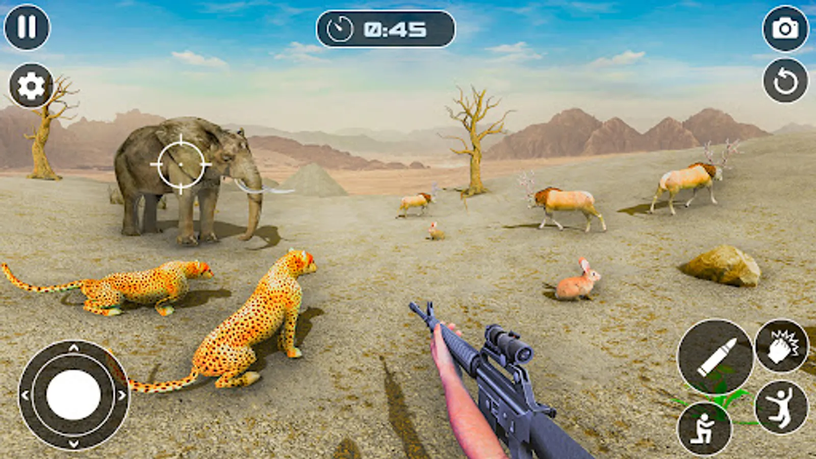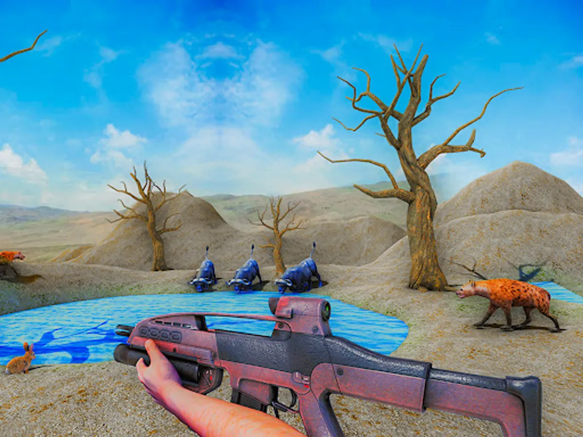 Grab your modern 3D sniper gun and aim the crazy wild animals to hunt and became the frontier animal huntsman. Shoot the different animals like tiger, lion, hyena and African buffaloes. Use the sniper gun to hunt them. Hunt or to be hunted, be a part of ultimate battle between you and wild and angry tiger, hyena, lion, African buffaloes. In Frontier Animal Hunting: Desert shooting 17 you can shoot the animals and kill them but also they can attack on you. Improve your shooting sniper skills to survive in the dusty desert. Your target is moving here and there and you have to aim precisely with a 3D sniper gun and don't let them attack on you. Kill all the animals to go the next level.