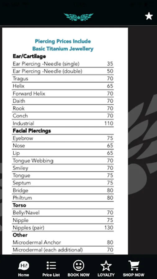 Collect loyalty stamps to get $20 off a piercing or jewellery