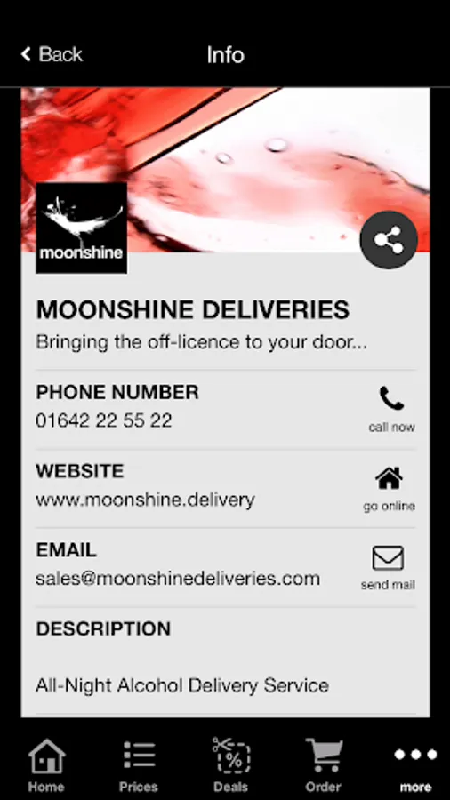 Established in 2004, Moonshine is an all-night alcohol delivery service operating throughout Teesside (Middlesbrough/Stockton-on-Tees), Redcar & Cleveland, Darlington, Hartlepool, and our latest branch is now open in Cumbria.