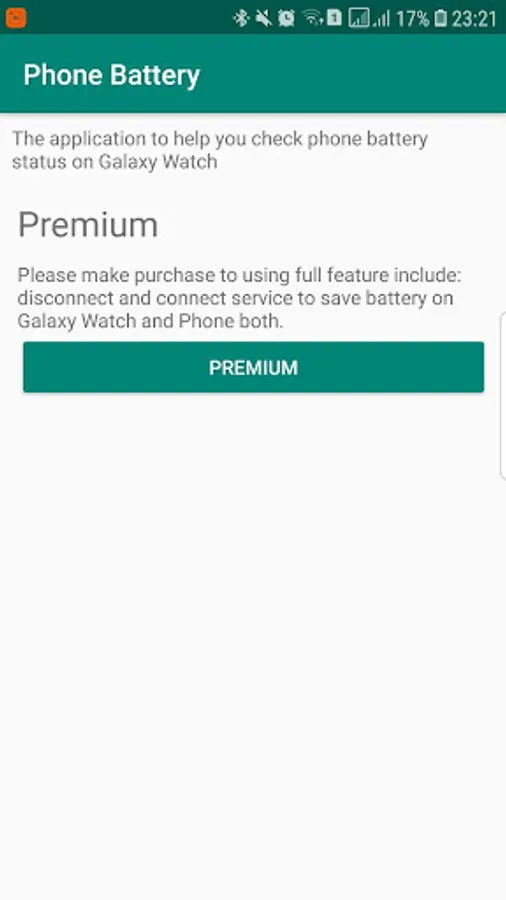 - With the PREMIUM version, after you check phone battery on Galaxy Watch, you can disconnect the connection to saving battery both (Phone and watch). Then you can connect again to check battery when ever you want.