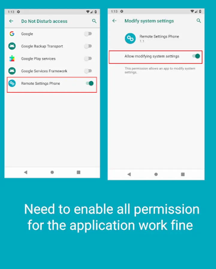 Note: Please enable all permission for phone applications