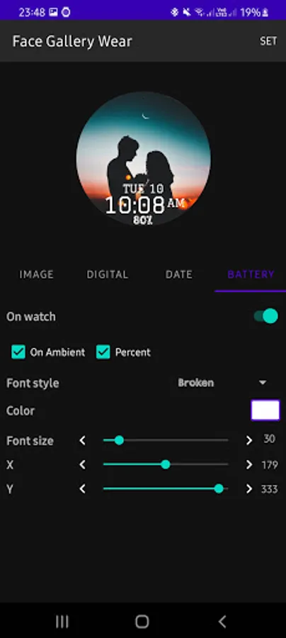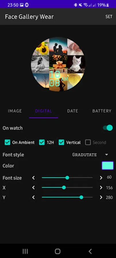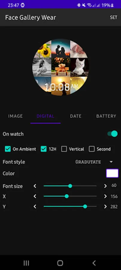 - Change color, position of date, battery, digital