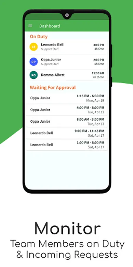 ✔️ Monitor your team members on duty