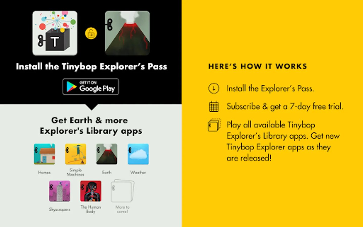 Get a 7-day free trial! To play The Earth (and more Tinybop apps), you must install the Tinybop Explorer's Pass.*