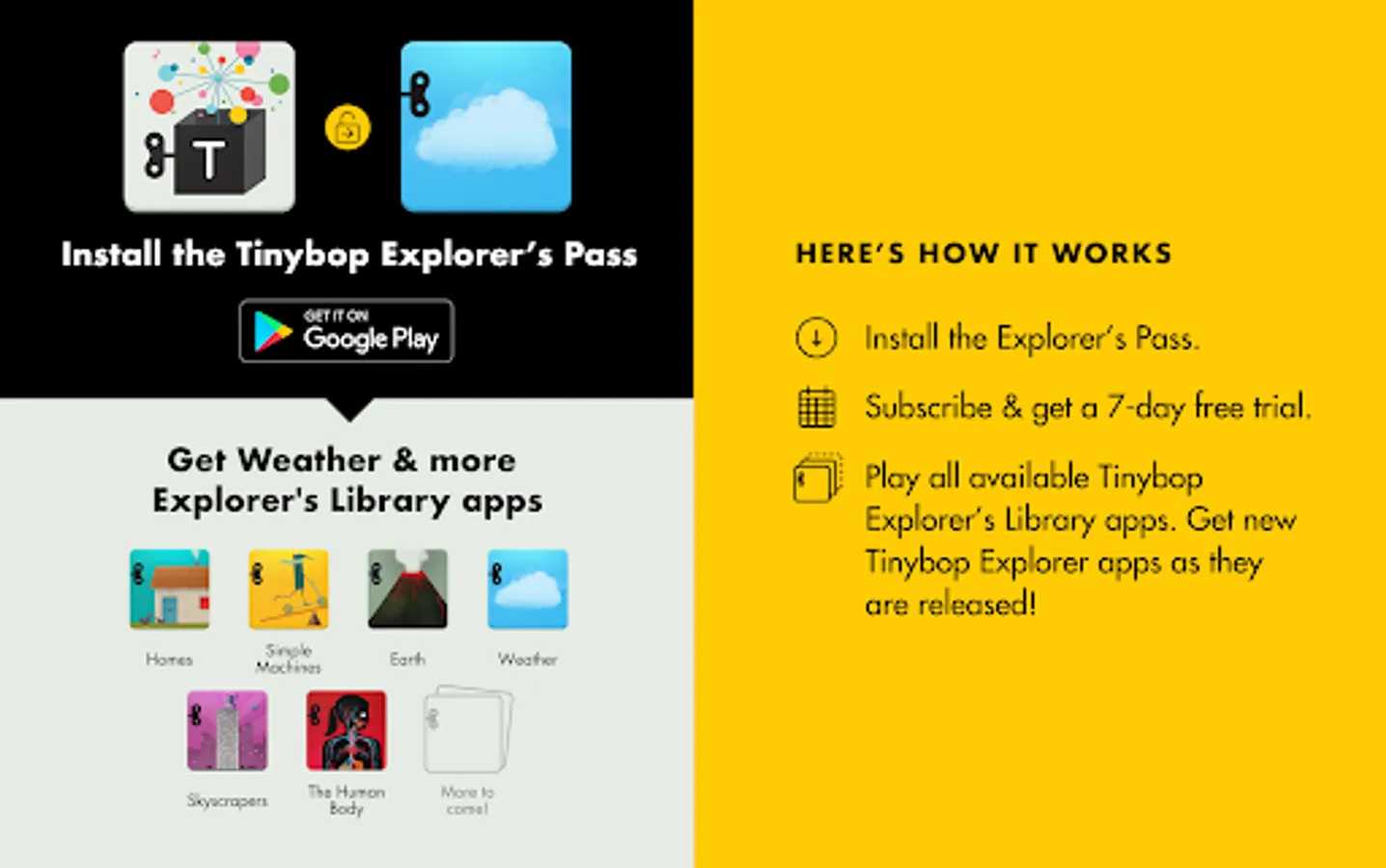 Get a 7-day free trial! To play Weather (and more apps from Tinybop!), you must install the Tinybop Explorer's Pass.*