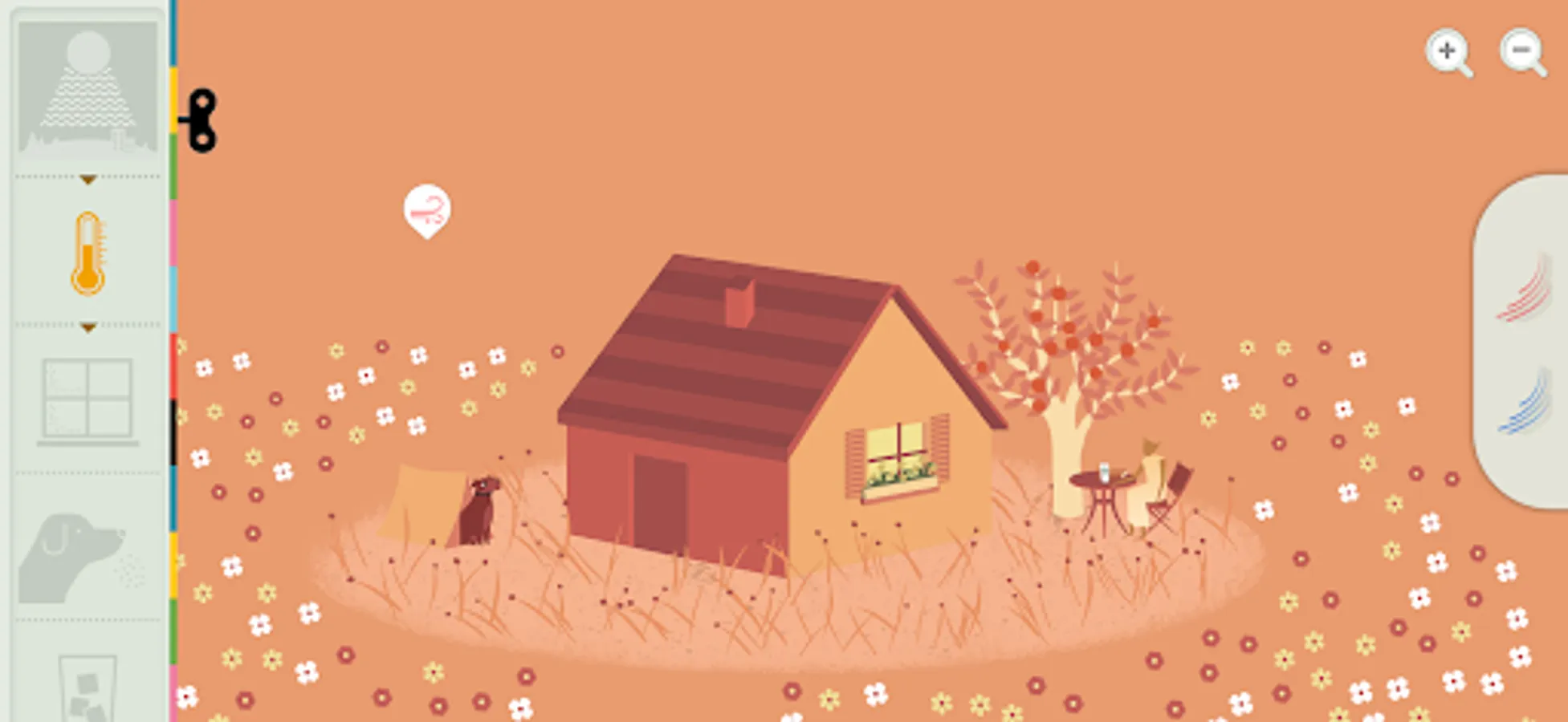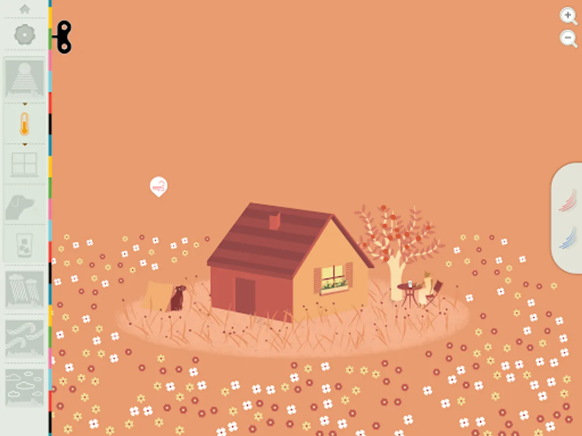 + Change the temperature. See how hot and cold affect precipitation, plants, and pets.