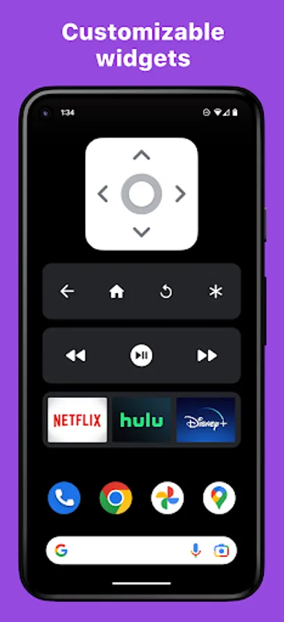 • Customizable Widgets turn your Android homescreen into a Roku remote