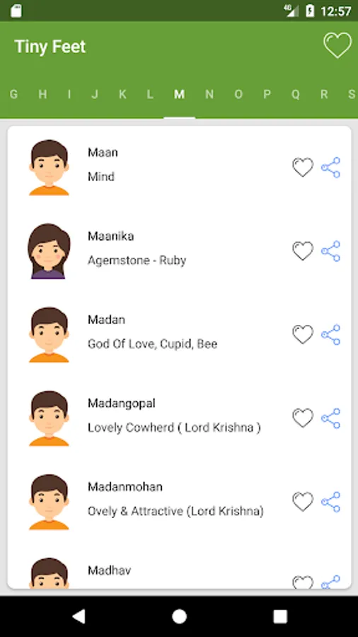 Tiney feet gets constant updates for its database. All the authentic Hindu names with its meaning.