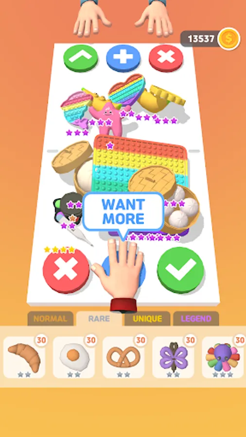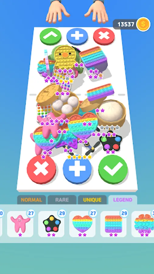 Collectable items: Soft and fluffy balls, slime toys / liquid monster-style toys, fidget toys, stress balls, jelly-style toys, dumplings, square push pops, heart push pops, giant push pops, fidget spinner pobits, ducks, dinosaurs, sticky balls, frogs, carrots, slippery fidgets, squishy, mochi, chicks, pigs, sticky rice, simkungran, octopus, dalgona and more!