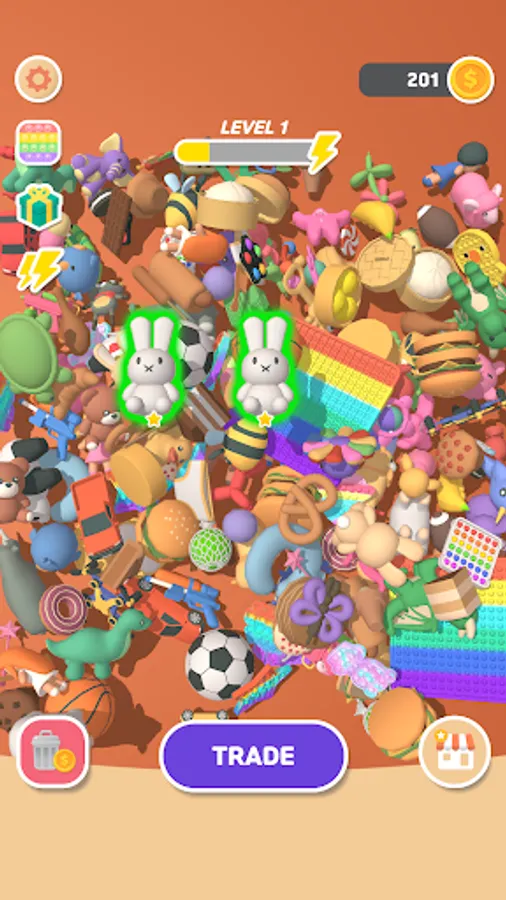Put the toys, pop-its, and fidgets you want to trade on the trading board and watch what the other people offer.
