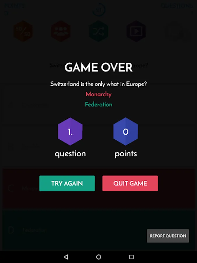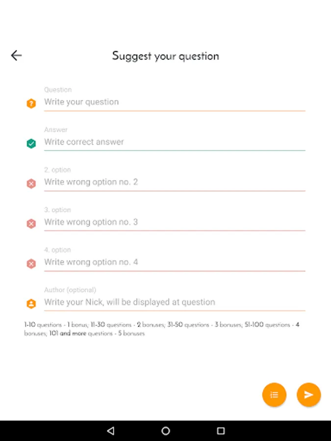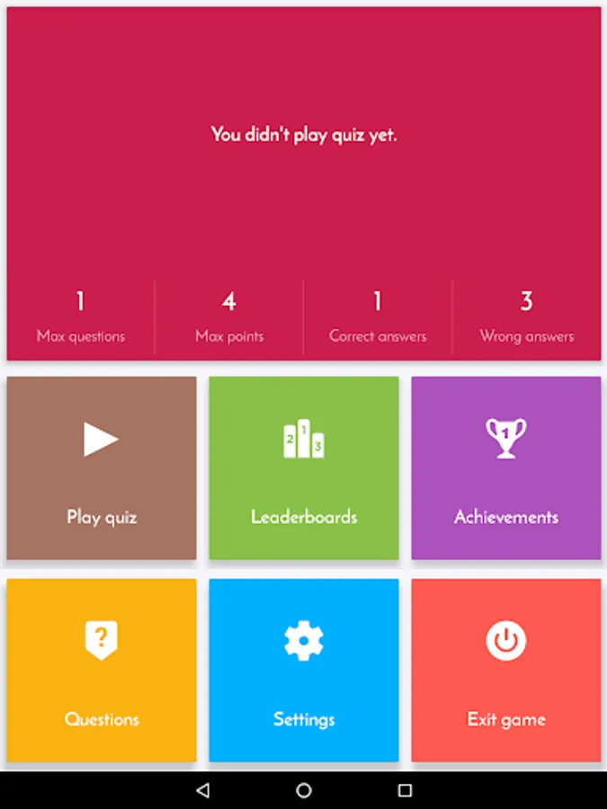 ...more than 15 languages, add your own question, report current question, managing of your added questions, buying more bonuses. This and even more is prepared for you to enjoy this game the most.