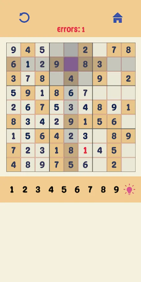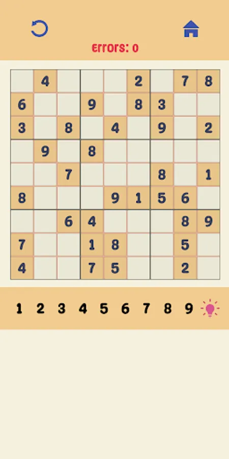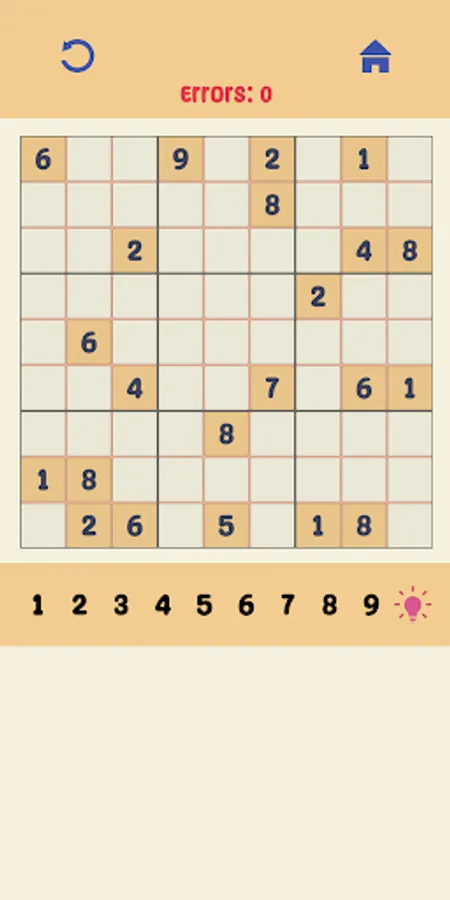 The goal of Sudoku is to fill in a 9×9 grid with digits so that each column, row, and 3×3 section contain the numbers between 1 to 9. At the beginning of the game, the 9×9 grid will have some of the squares filled in. Your job is to use logic to fill in the missing digits and complete the grid. Don’t forget, a move is incorrect if: