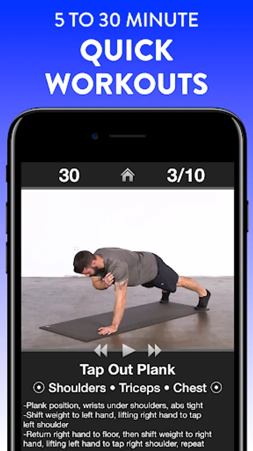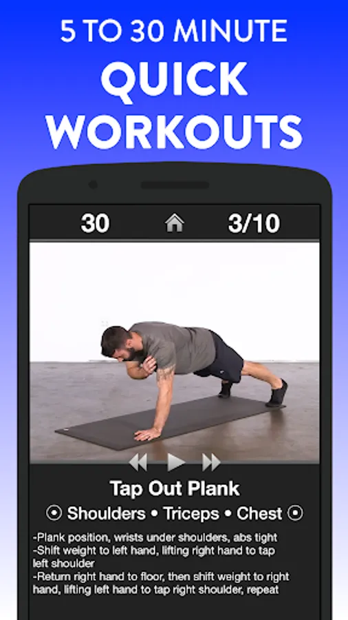 Daily Workouts provides great 5 to 30 minute daily workout routines for men and women that step you through some of the best exercises you can do in the comfort of your own home. These proven workouts, demonstrated by a certified personal trainer, target all major muscles. Spending just minutes a day can strengthen and tone your body. The routine's simple interface, complete with video and timer, allows you to easily follow along and understand each exercise. Simply select your routine and follow along!