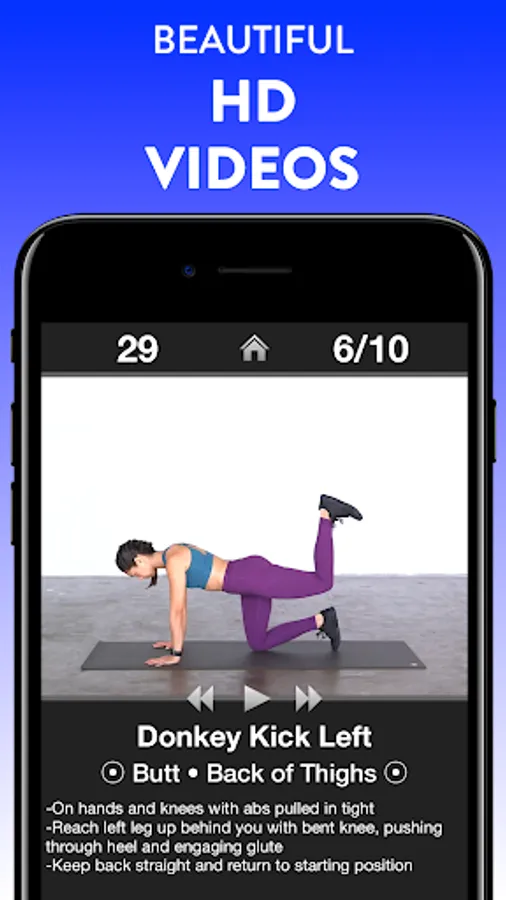 • 39 different 5 to 10 minute targeted workouts (choose to focus on abs, arms, butt, legs or cardio)