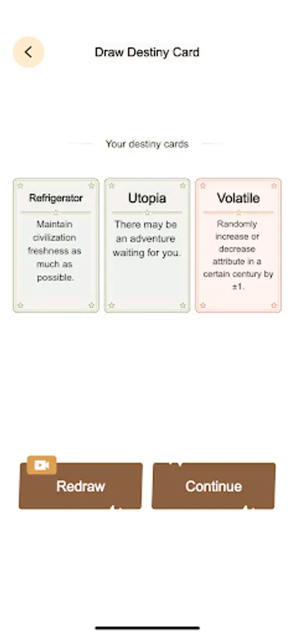 Step 1: Draw the mystical cards bestowed with system blessings. You will receive three different Destiny Cards that will deeply influence your destiny in the era of civilization.