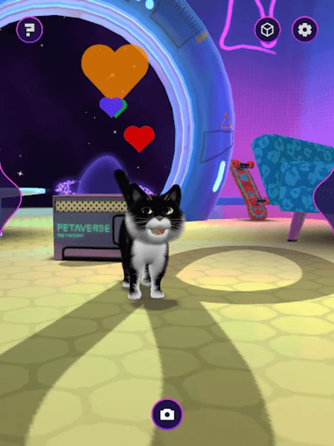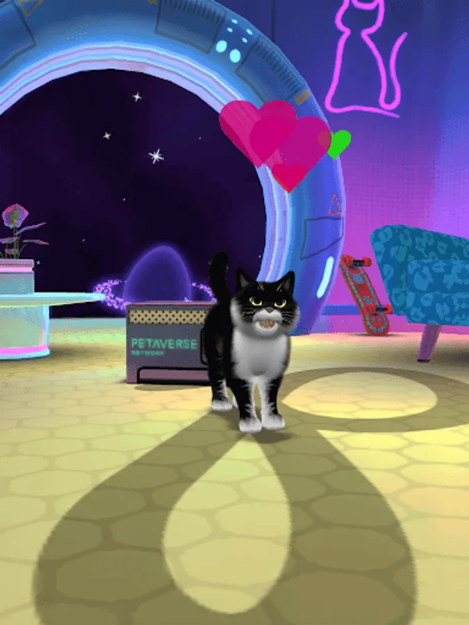 Log into your Petaverse account to access your pet - to name, stroke, play and bond with! Capture delightful moments and create shareable meme social media content with your unique digital pet. Even see what they looked like as a kitten!