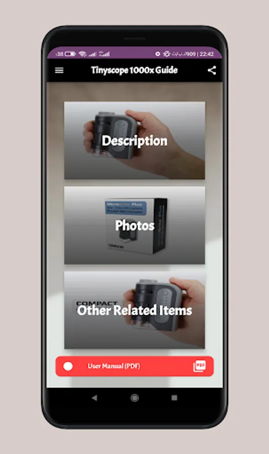 In tinyscope 1000x guide app we supported many sections of content that will let you now more information about tinyscope 1000x guide