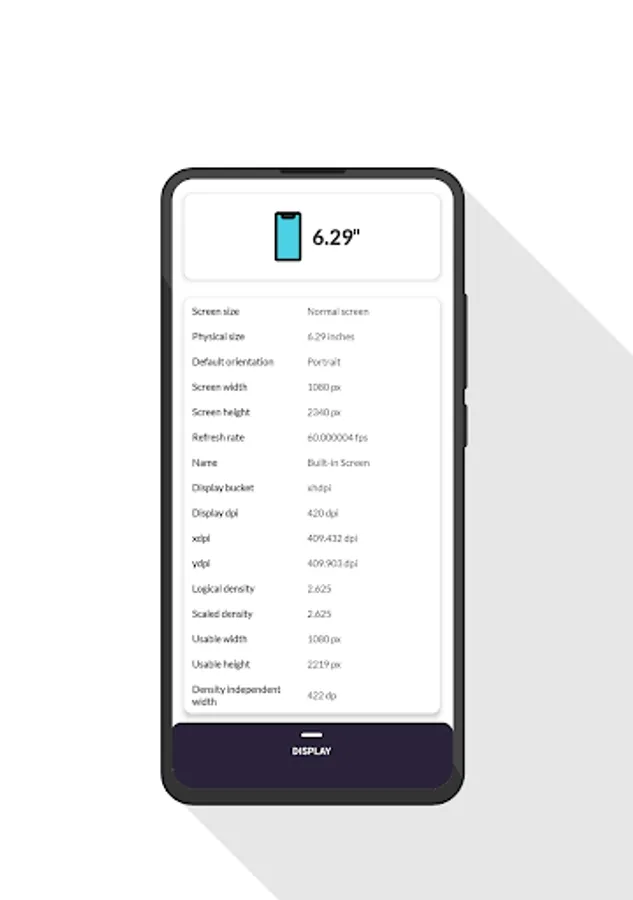 - Display : screen resolution, screen refresh rate, screen dpi, logical density, physical size, screen size, device bucket etc.