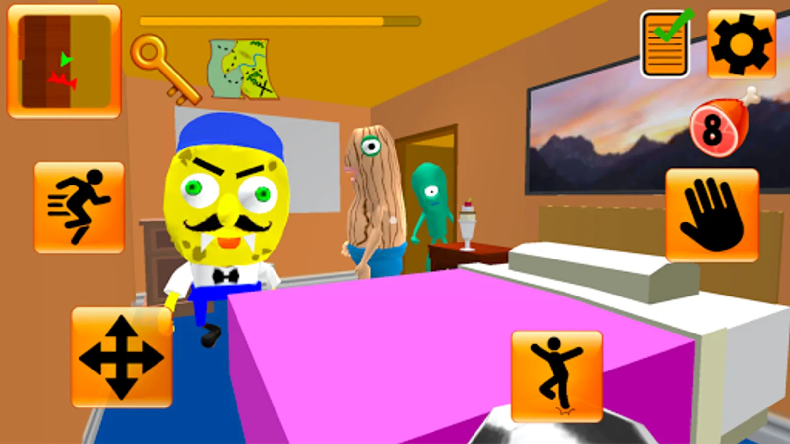 • Amazing environments. Explore this Scary huge neighbor’s house in Bikini city and beware of enemies!