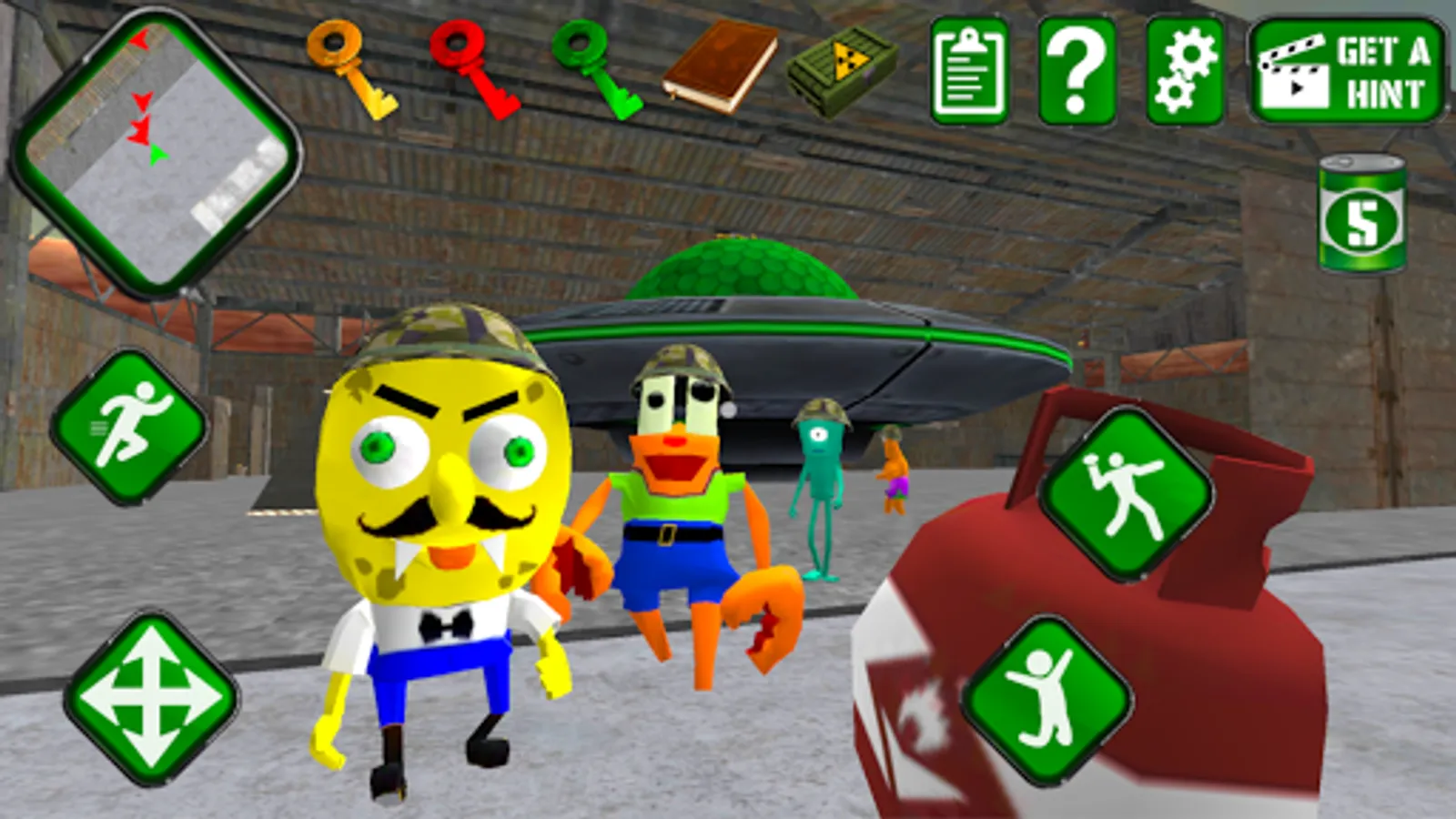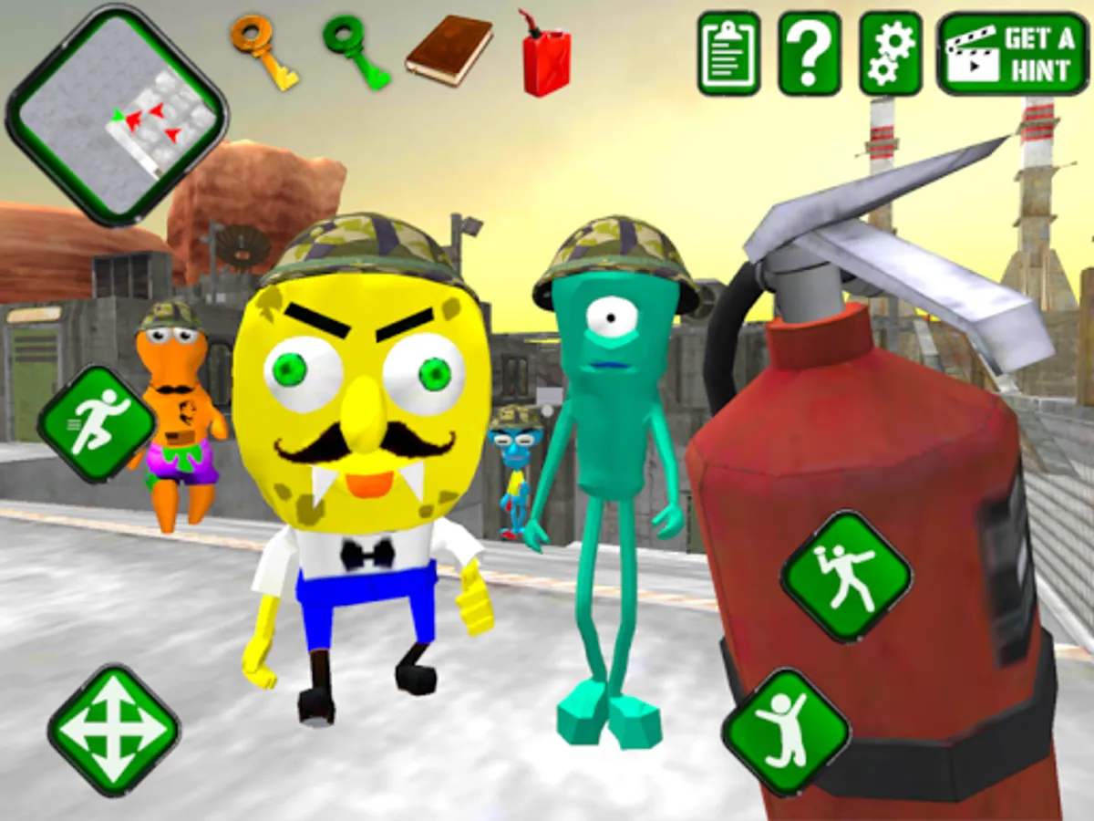 Go ahead and Explore the huge military base location. Reveal all secrets of this terrible sponge gang!