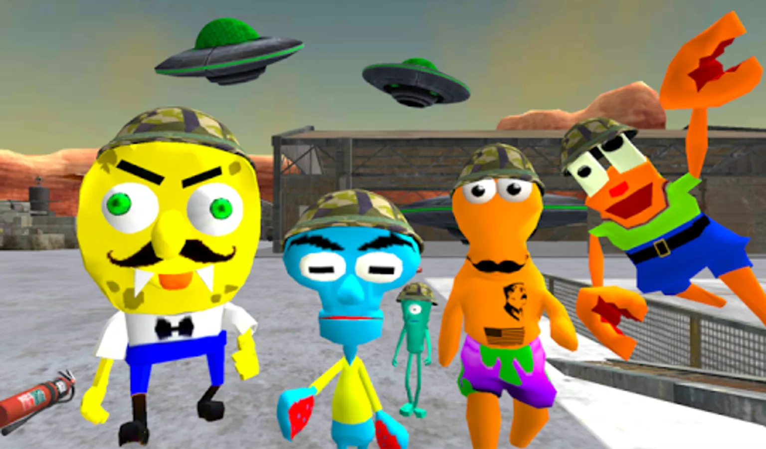 This is a story about a guy Bob who gets into the Area 51 full of Sponge neighbor’s friends! Meet Squid, Plankton and Patrick! Explore the huge secret military base!