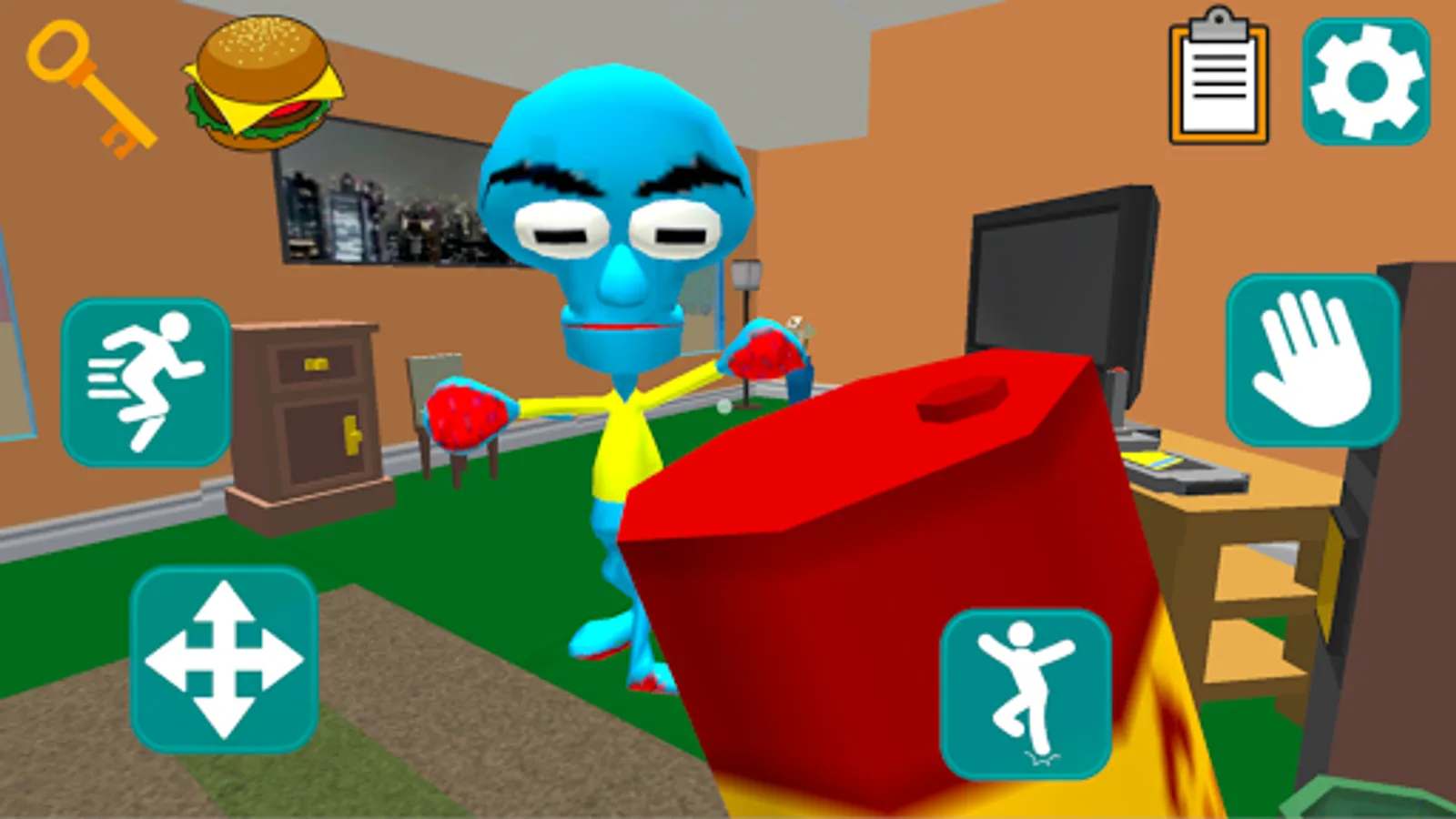 The game has been implemented all your wishes. You can change the sensitivity control settings as you like. The game provides you with wide opportunities. You can pick up items and throw them at a neighbor to stun him, it will give you some time to escape!