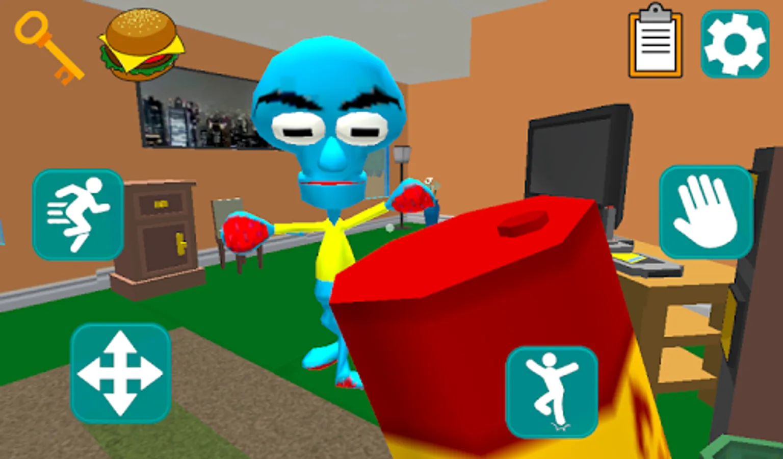 Very soon, you began to notice that your new squid neighbor Bob began to behave discreetly. He always looks around and installed surveillance cameras around his house... You decided to find out if he is related to this robbery. Try to get into the house and find evidence. Feel like a detective in the house of your strange sponge’s neighbour.