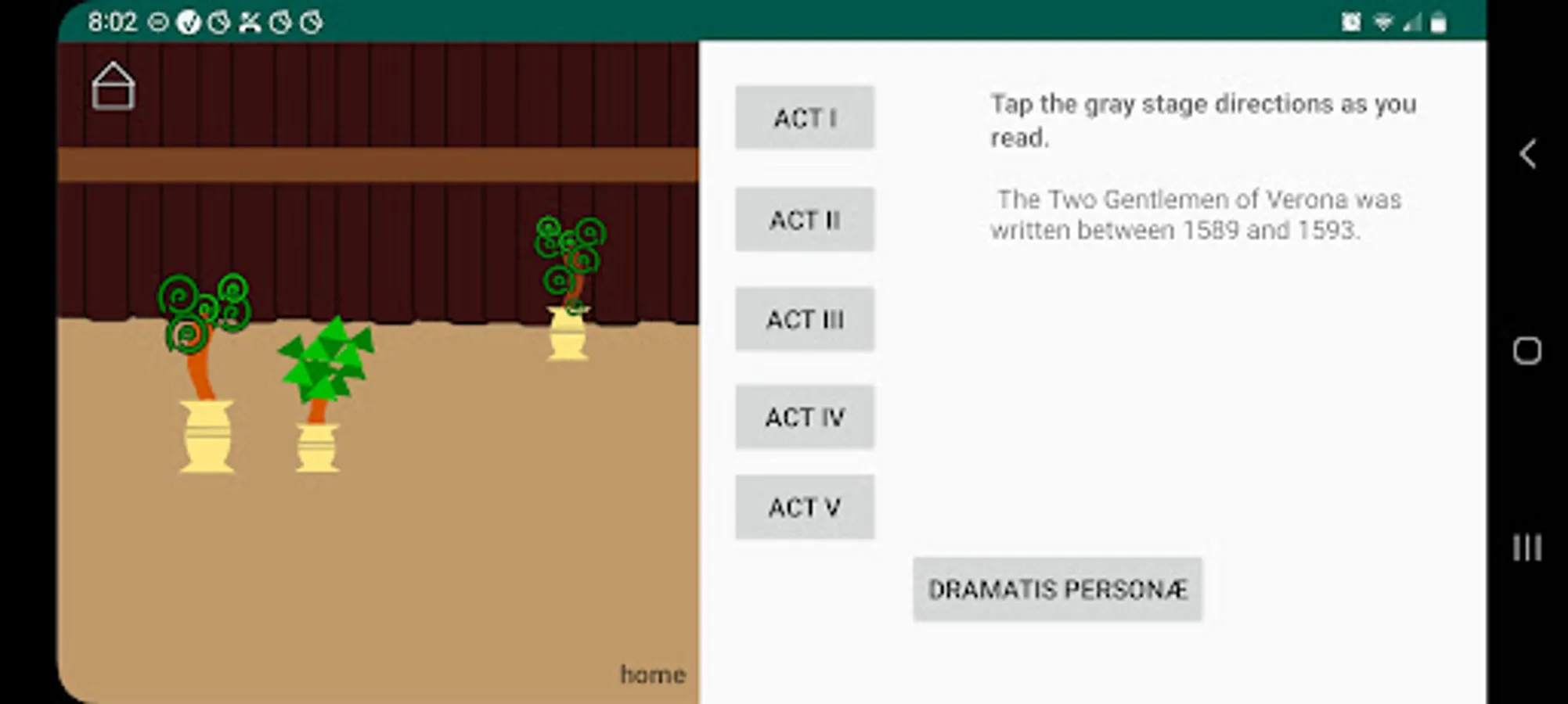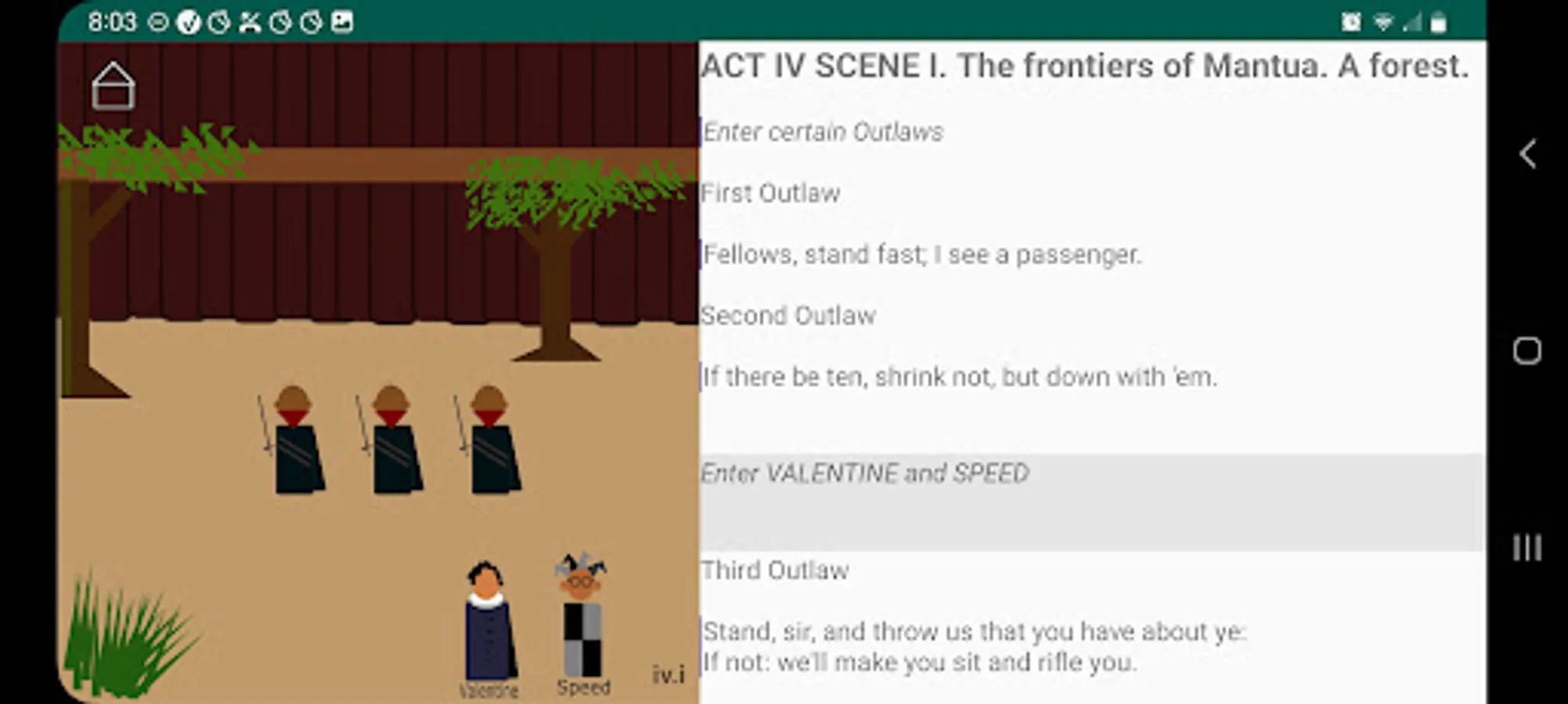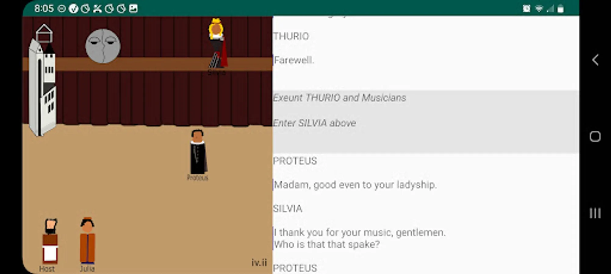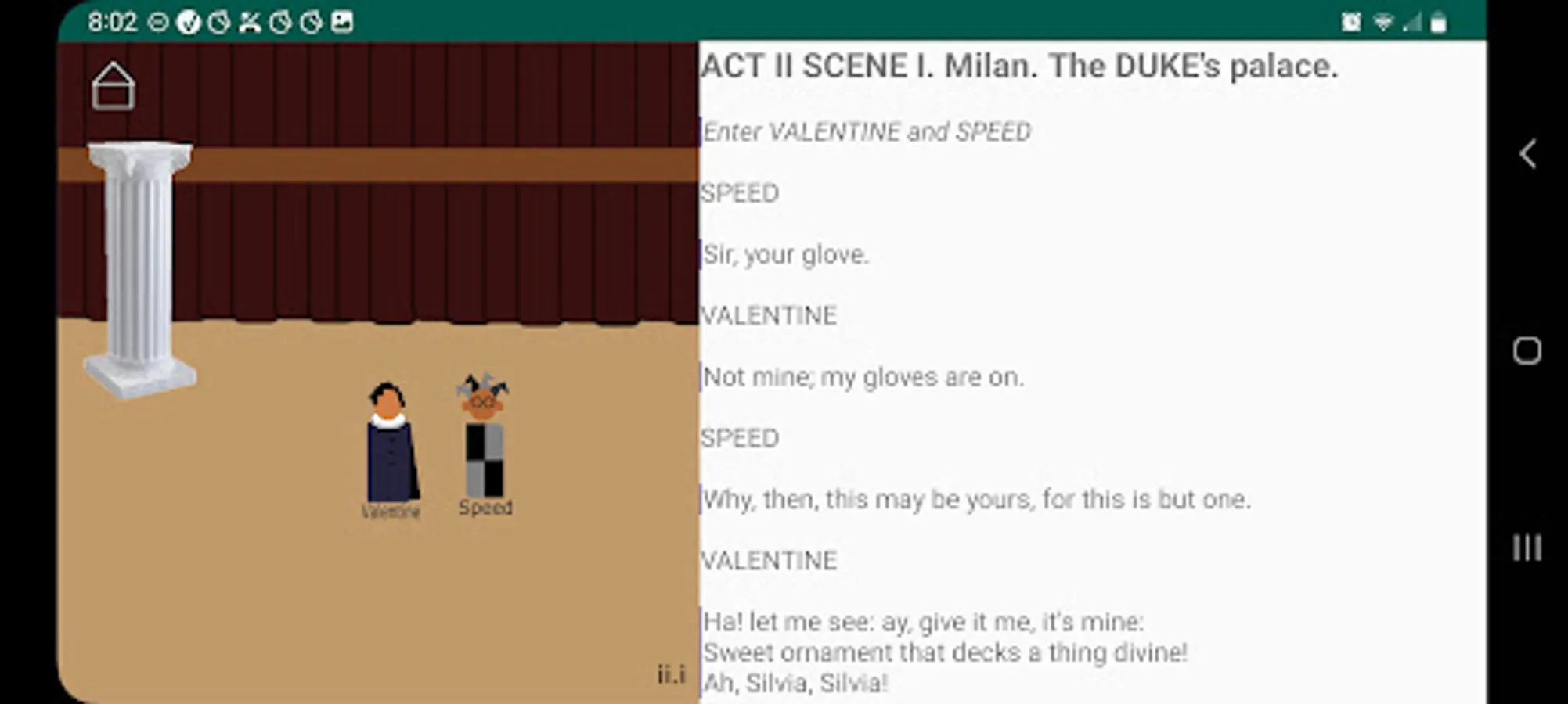 The play's the thing! As you read the play, tap the stage directions and see the little players make their entrances and exits. Helps keeps track of who is on stage. There is very little animation, so as not to distract from the words, which are what really matter. These actors have very limited range, but they stay in place and set the scene while you read. No Ads. Does not any phone services.