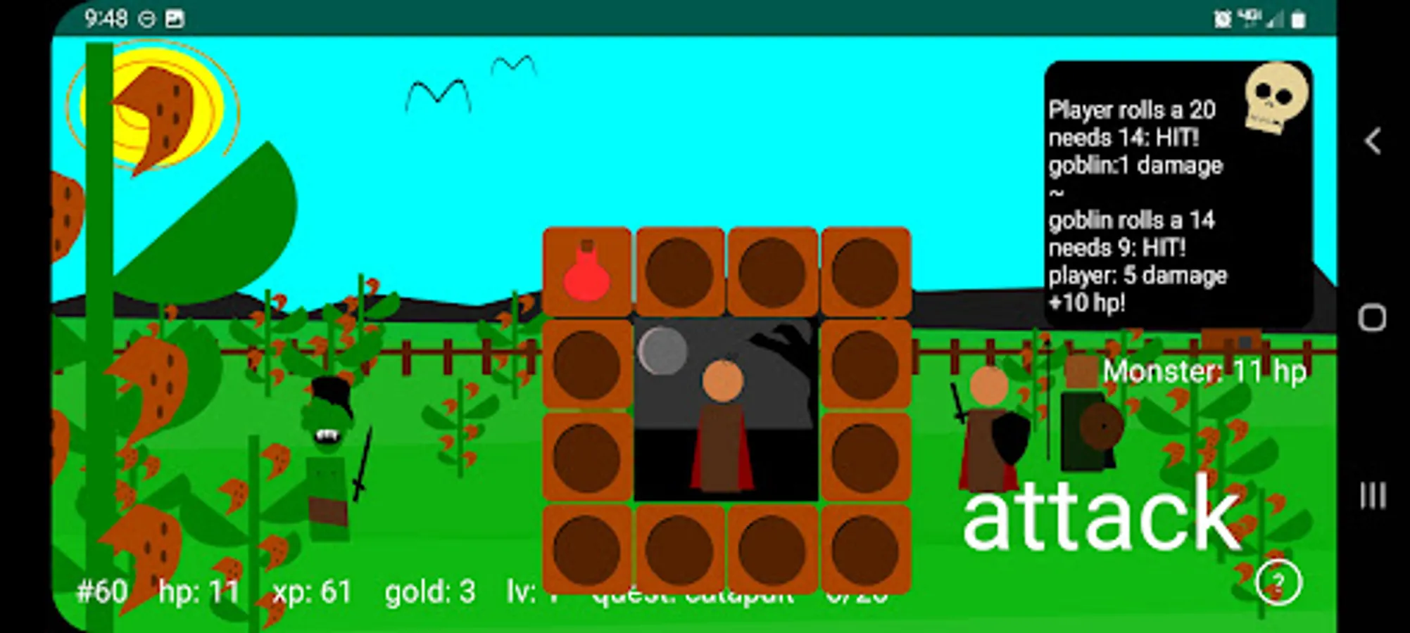 Complete four exciting quests, collect armor and weapons, fight monsters in above-ground and underground settings. Collect experience and level up! Hire hirelings to help in your quests, and fight the final boss, the Troll King.