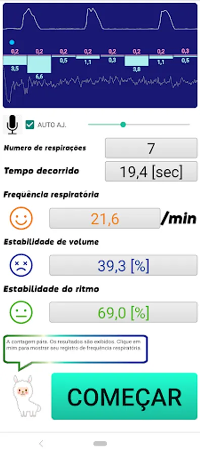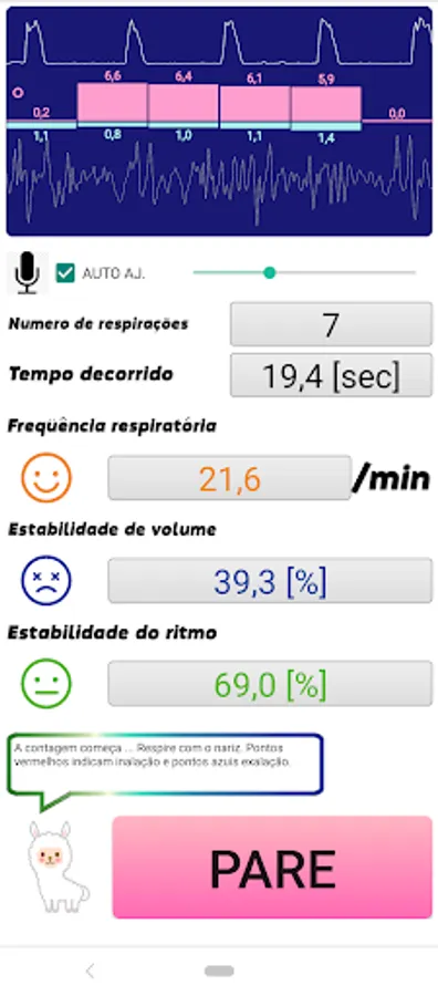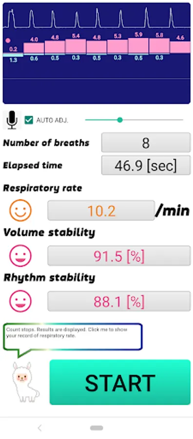 - Place the microphone of your device just under your nose and measure the breathing intervals with the microphone.