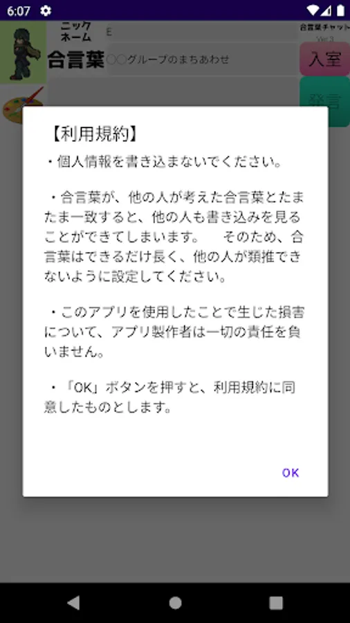 ・ You can start chatting immediately by deciding the "password" and sharing it with your family and friends.