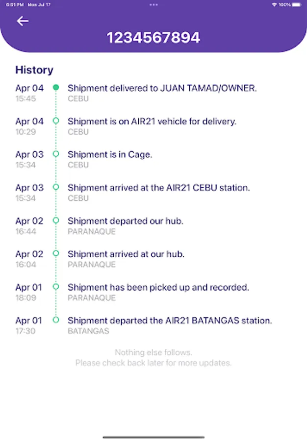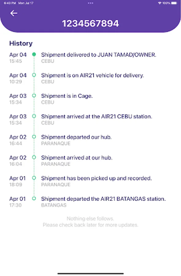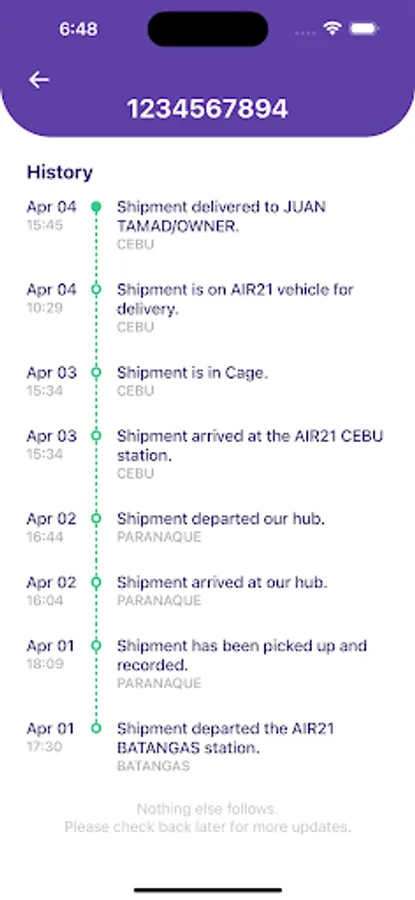 With AIR21 Tracker, you can easily monitor the progress of your AIR21 packages and passports in real-time. Simply enter the tracking number, and the app provides you with instant updates on their delivery status. Whether you're awaiting a crucial package or anxious about the arrival of your passport from the Philippine DFA, this app has got you covered.