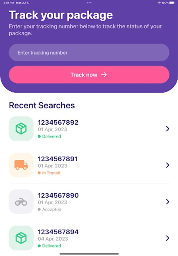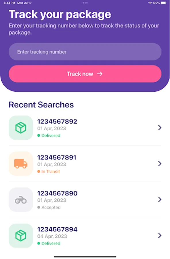 Recent Searches: Quickly refer back to previous tracking numbers without re-entry.