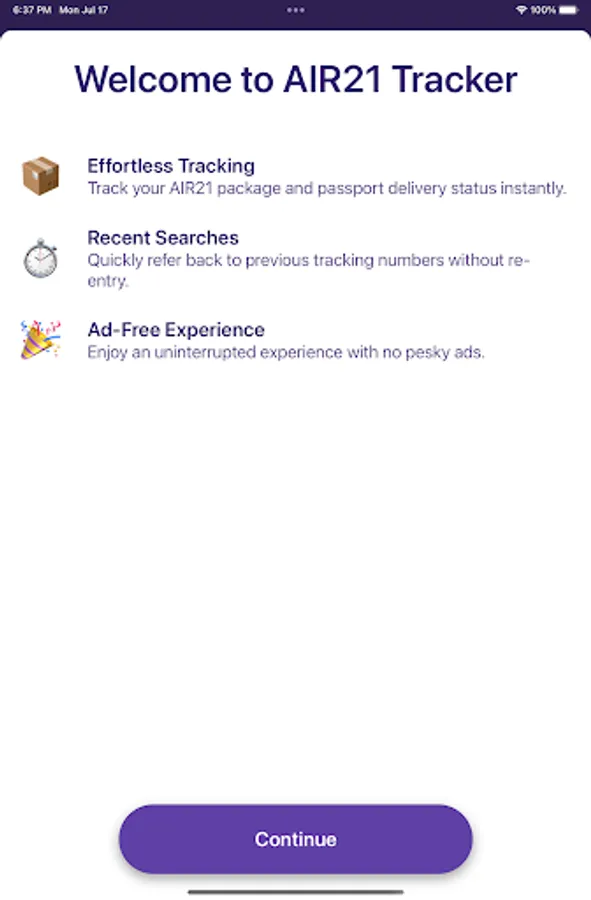 Please note: This app is designed to track AIR21 packages and passport deliveries. It is not affiliated with AIR21 and is not the official app for AIR21.