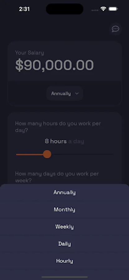 💰Flexible Salary Inputs: Easily calculate your salary by entering it annually, monthly, weekly, daily, or hourly, without the need for manual conversions.