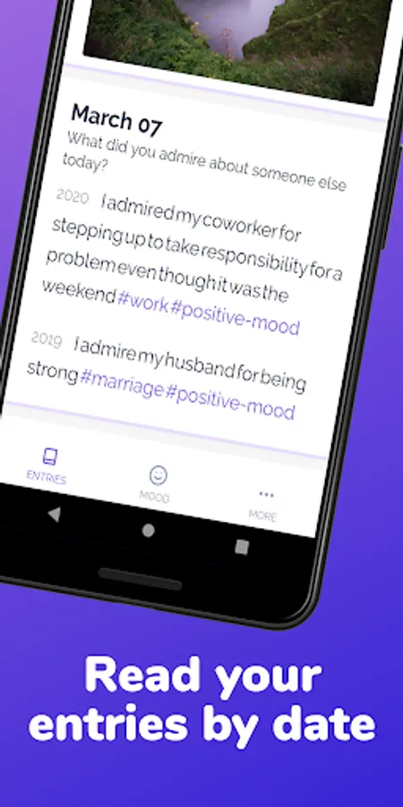 🟣Tag and filter entries. Want to see all your posts about family? Just add the tag #family and you will easily be able to see them all in one place.