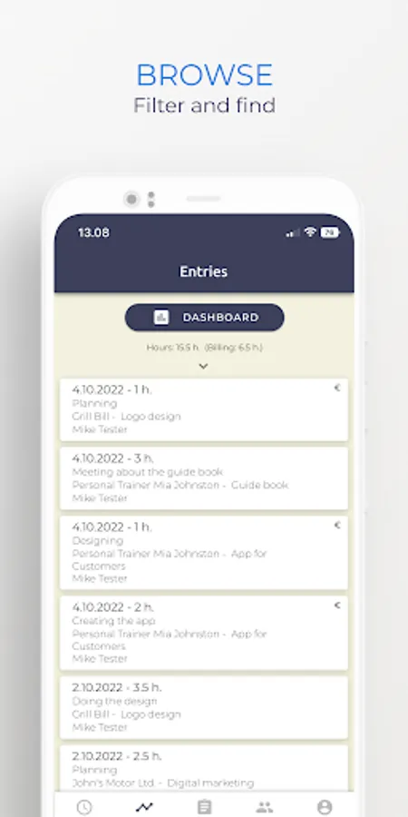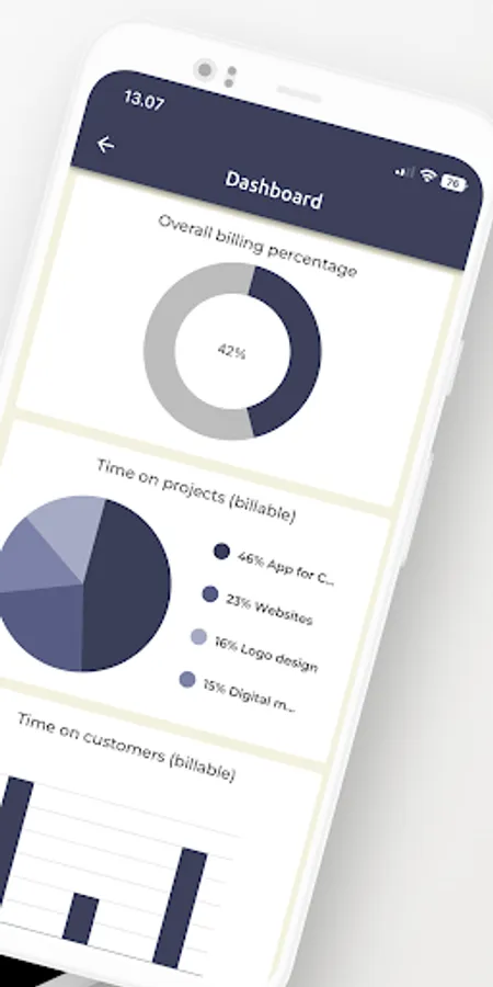 TinyTime is a FREE and super easy-to-use work time tracking app that can be used solely or with your colleagues. In the app, you and your colleagues can mark working hours for a project and a customer. Thus, you can browse how much work is done for a project or a customer. With a very clear and easy-to-understand dashboard, you can find out with a glimpse what the billing percentage of your organization is or how much work is done to a project or a customer.
