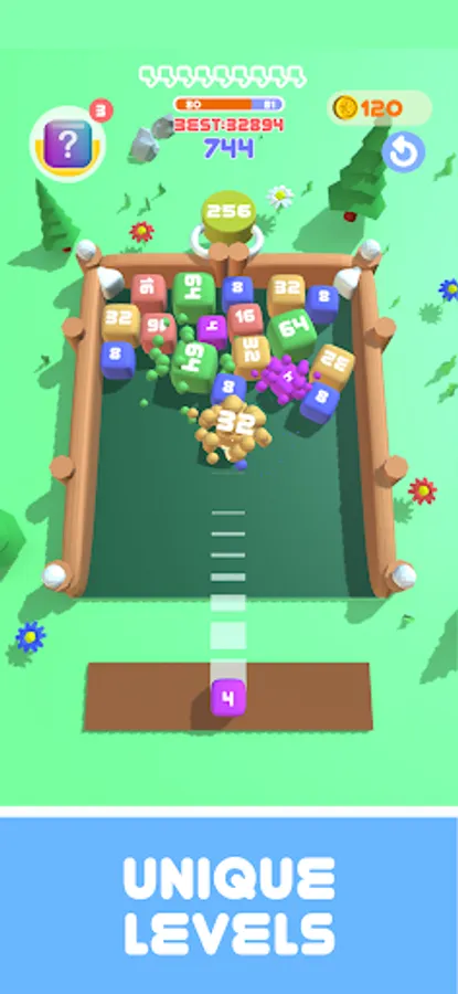 Swipe your finger on the screen to aim and release to shoot the cube and merge with the same colour.